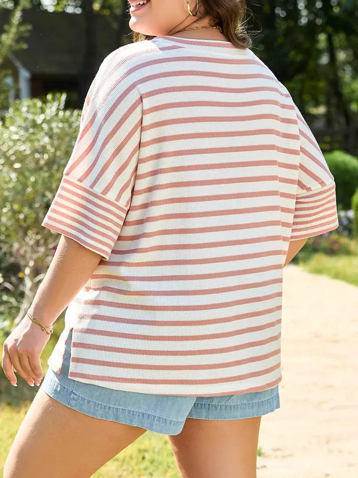 Striped Waffle Knit Tee (Plus)