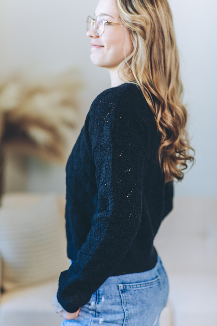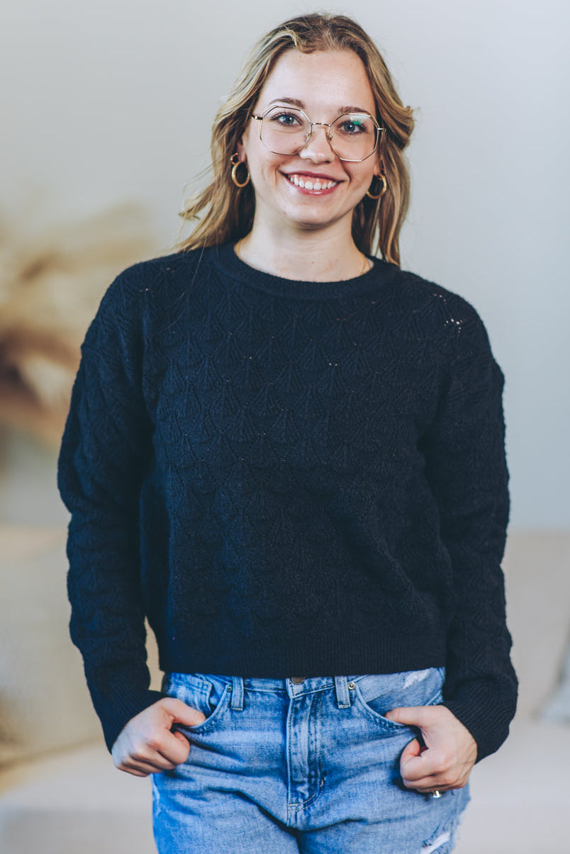 Cozy up with the Tally Textured Knit Sweater, featuring charming textured details that add a fun twist to your look. Its round neck and long sleeves keep you comfy and ready for any adventure. Perfect for days when you want to stay snug but stylish!