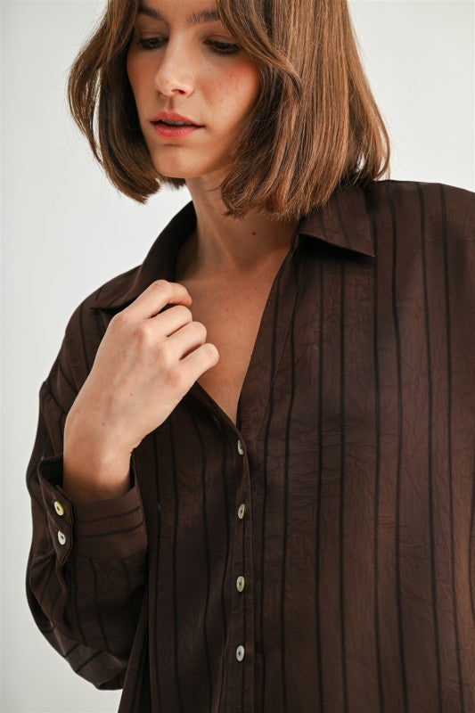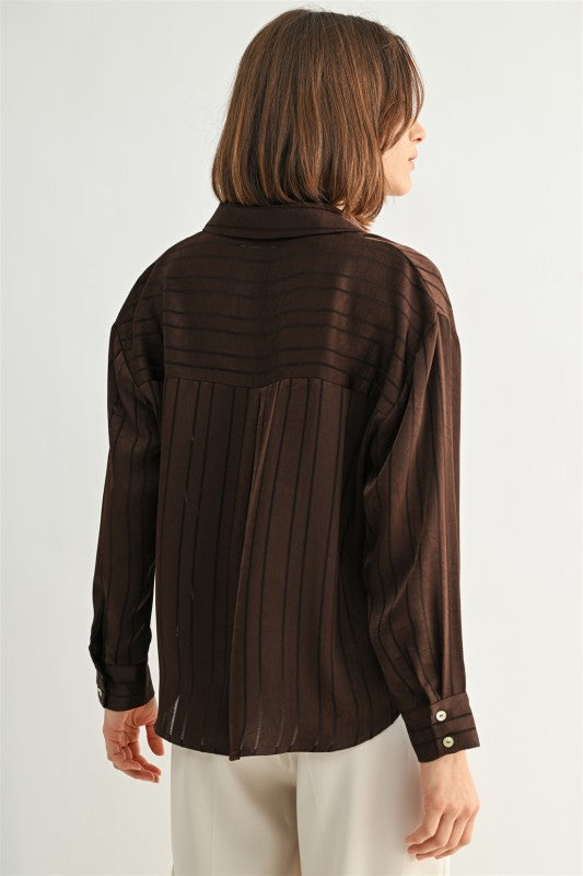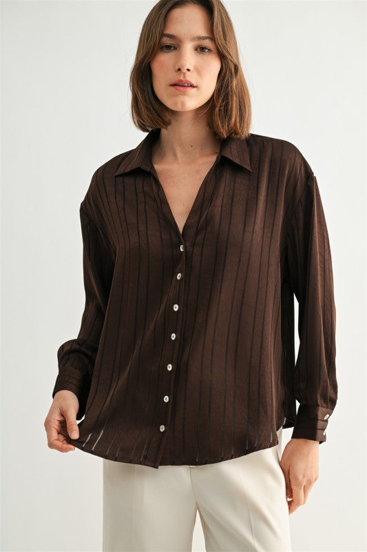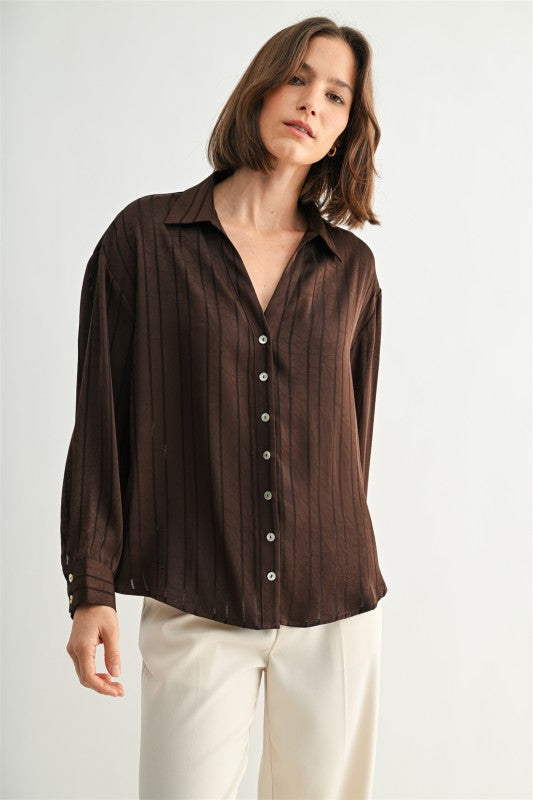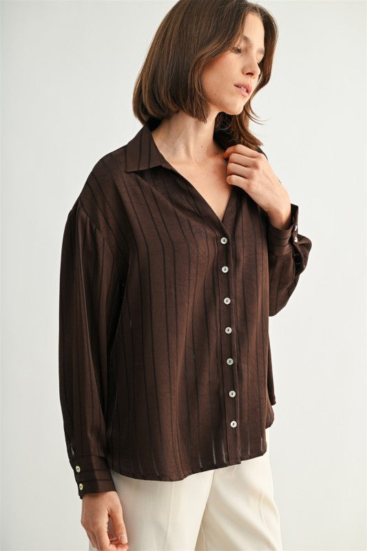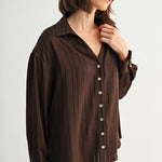 Stripes meet texture in this charming button-down blouse that's ready for anything. The classic V-neck flatters every frame, while the full button closure gives you easy styling options—dress it up with tailored trousers or keep it casual with your favorite jeans. Soft, dimensional stripes add visual interest without demanding attention, making this a versatile wardrobe essential that works as hard as you do.