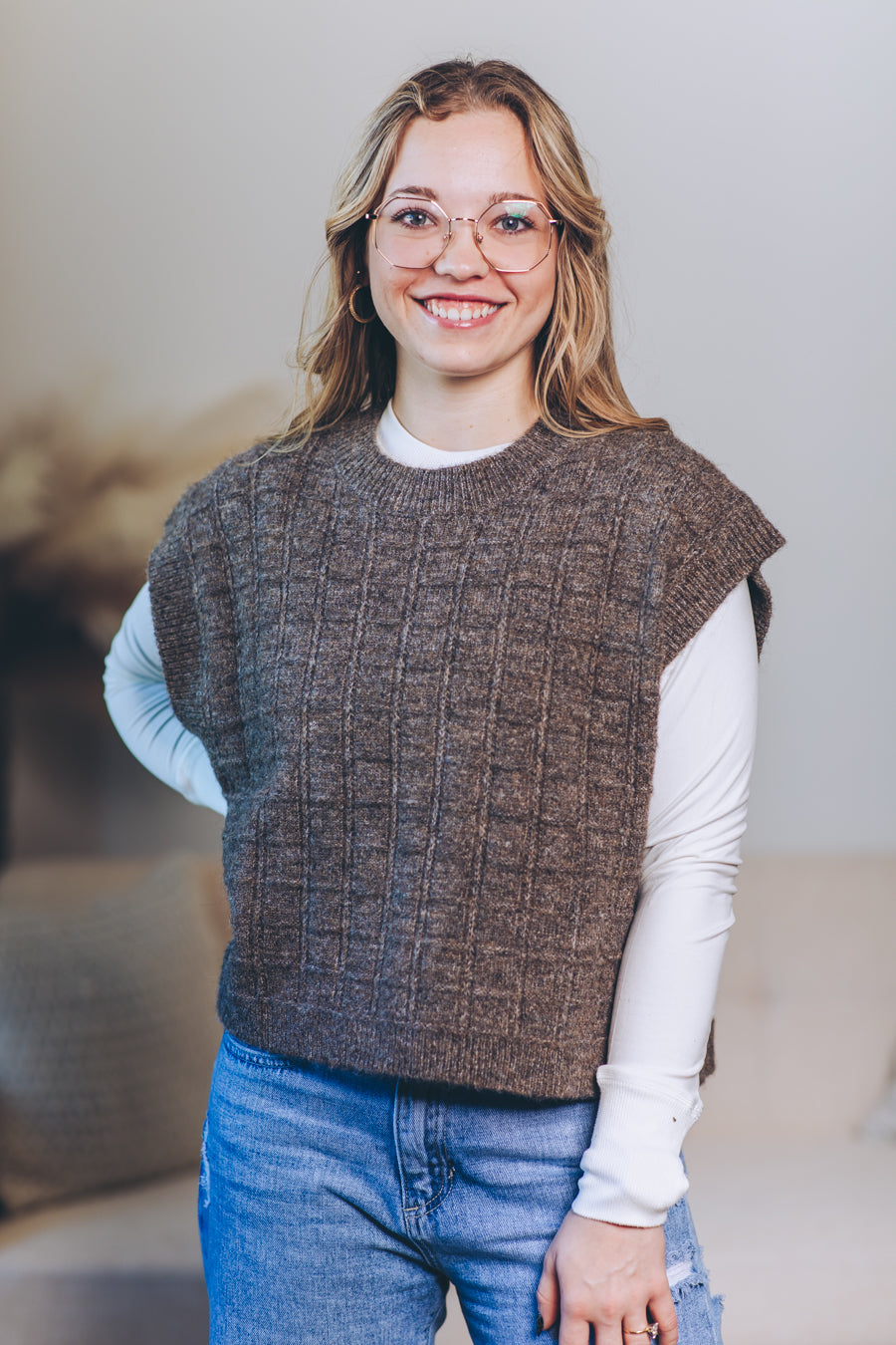 This Textured Pattern Sweater Vest brings cozy charm with its boxy fit and adorable look. Perfect for layering, it adds a playful touch to any outfit while keeping you comfortably stylish. Pair it with your favorite shirt or dress for an effortlessly cute vibe.