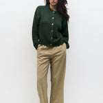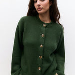 The Hannah Cardigan is a chunky midweight knit cardigan designed with an oversized fit for a relaxed, effortless silhouette. It features rolled edge ribbing along the neckline, hem, and cuffs, and is finished with a full front button closure.