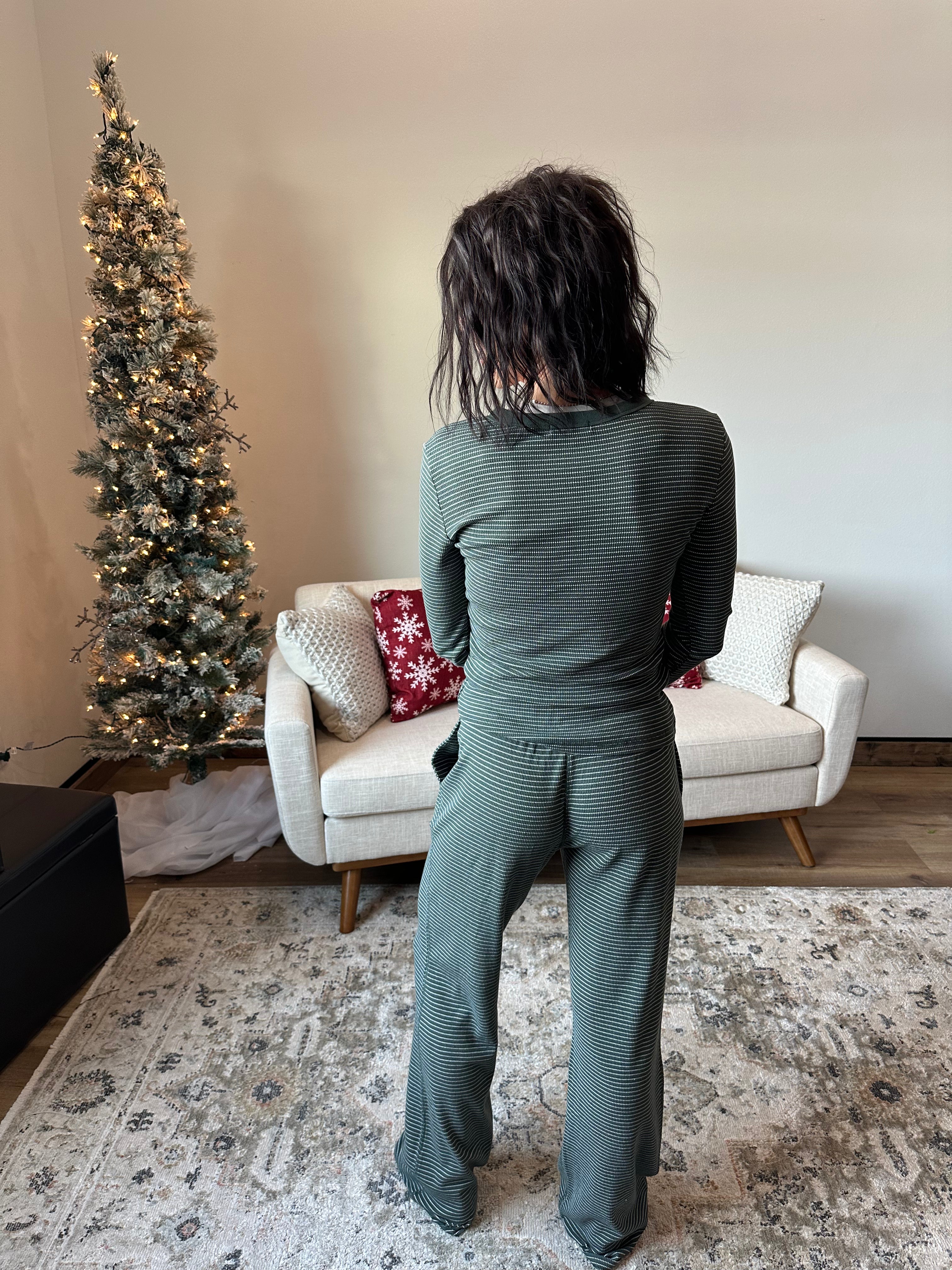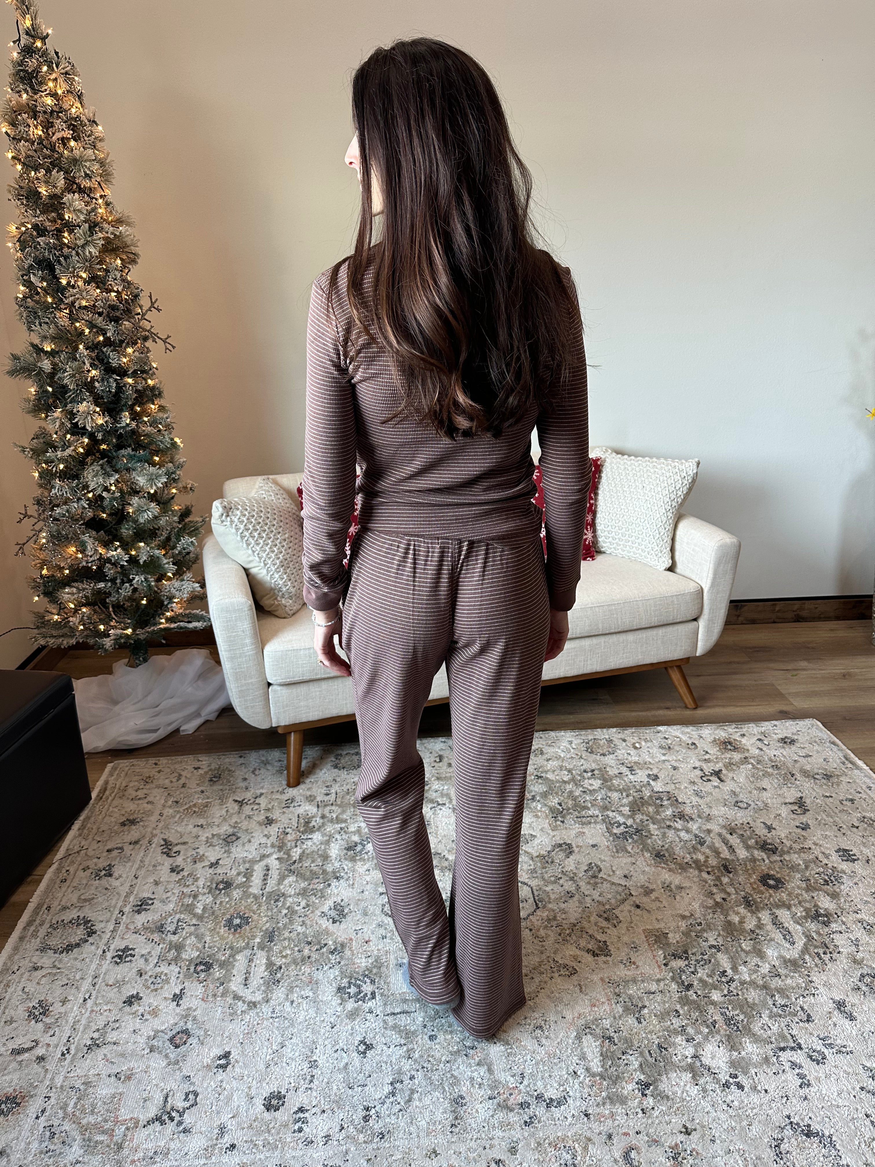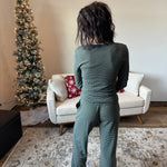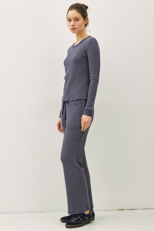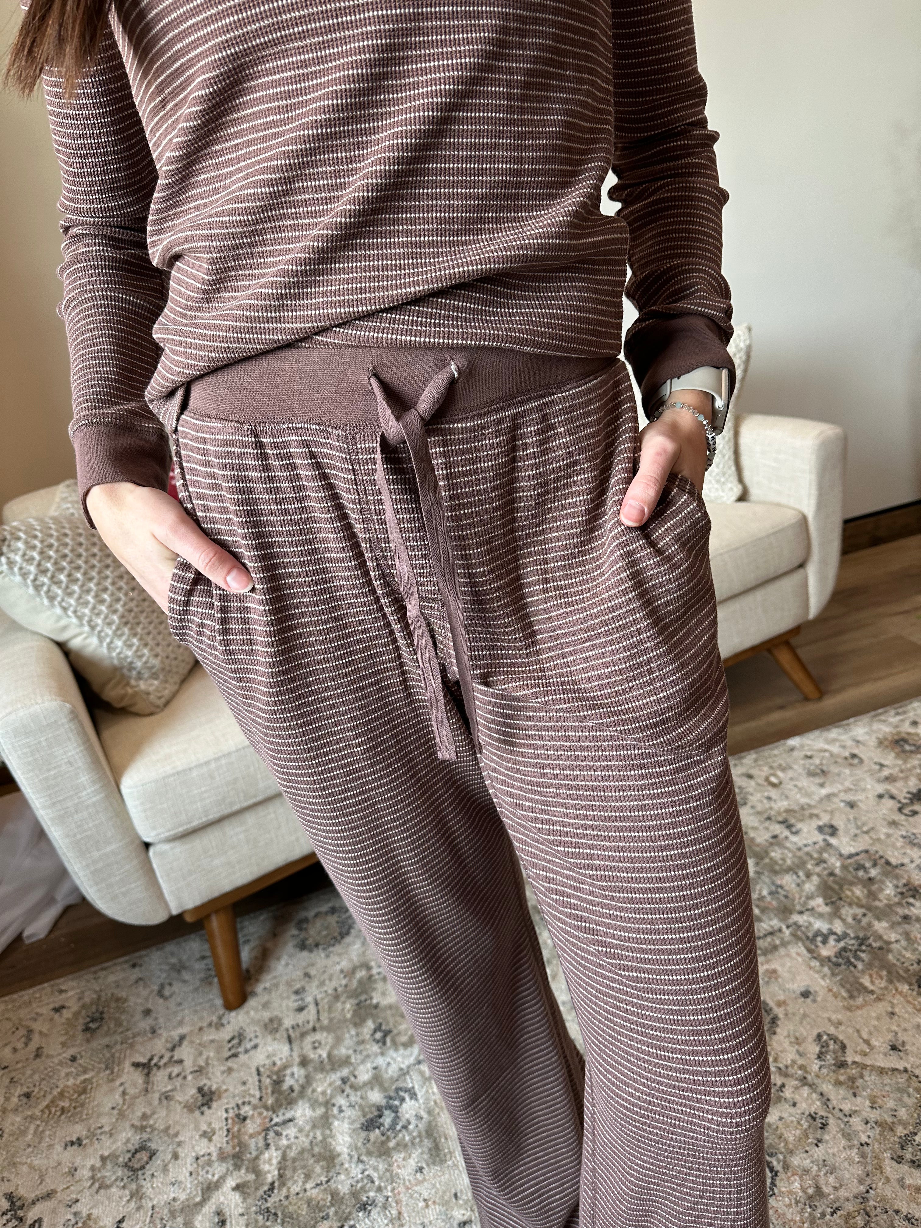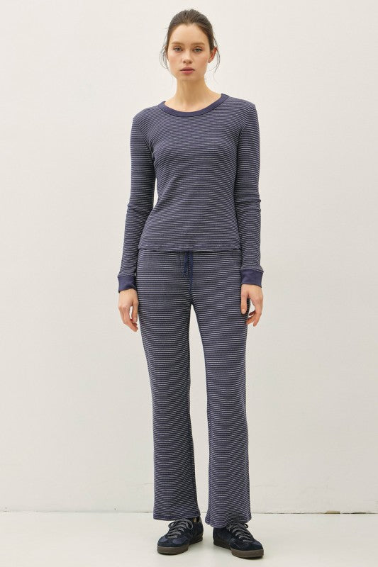 Get cozy with the Think Thermal 2 Piece Set—your new go-to for comfy layering! Featuring a round neck with contrasting binding and cuffed long sleeves, this basic top is soft, stretchy, and perfect for chill days. The relaxed slim fit makes it easy to wear solo or as part of the matching pants set -> a wide leg pull on pant with an elastic drawstring waist!