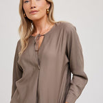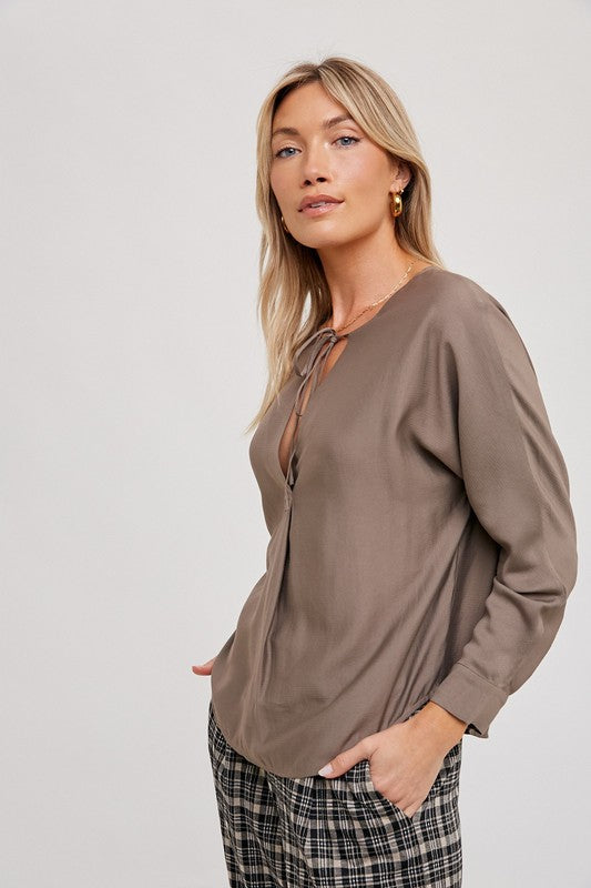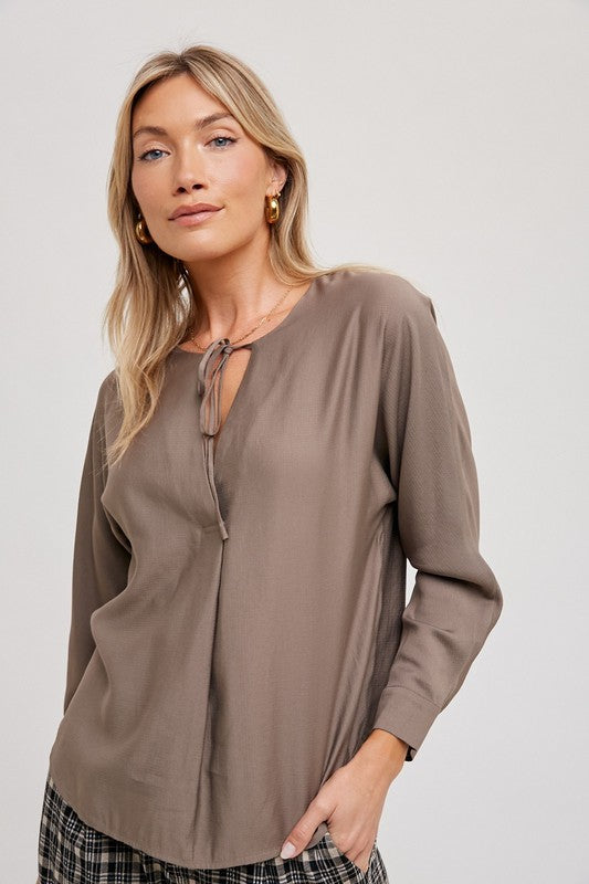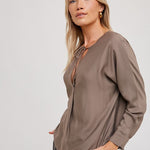 This Tie Front Dolman Blouse brings effortless charm with its playful tie-front detail and relaxed dolman sleeves. Perfect for adding a flirty twist to your everyday look, it pairs easily with jeans or skirts for a flirty, fun vibe you’ll love to wear all day.