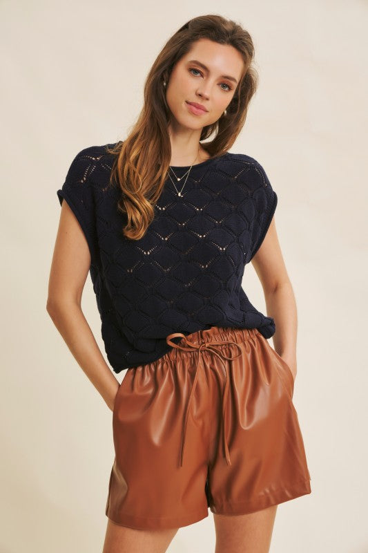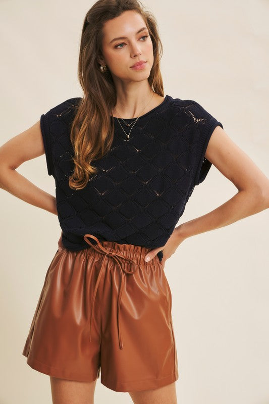 This sleeveless sweater top brings cozy charm with its textured cable knit and classic round neck. Perfect on its own or layered, it adds playful dimension to any outfit while keeping you comfortably stylish all day.