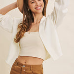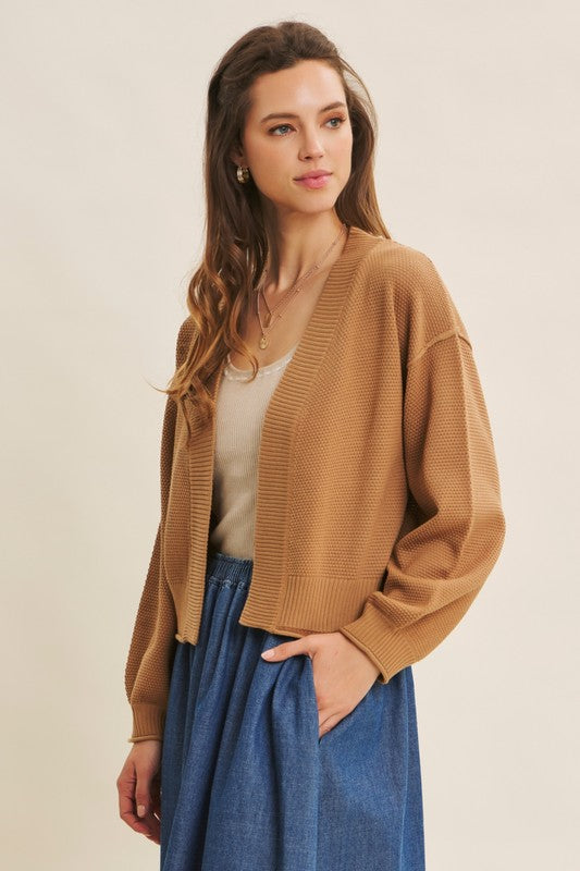 Wrap yourself in cozy charm with the Timeless Waffle Cardigan. Its open front and soft cotton blend make layering a breeze, while the textured waffle knit adds a touch of playful warmth. Long balloon sleeves bring a fun, breezy vibe, perfect for lounging or stepping out in style. This cardigan is your go-to for effortless comfort with a twist!