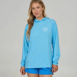 Catch some rays without the burn in this laid-back tech hoody that's got your back—literally. Featuring UPF 50+ sun protection, it's your new favorite beach companion that doesn't sacrifice style for function. The lightweight, multi-stretch fabric moves with you, while raglan sleeves and a convenient side slit at the hem keep things breezy. Topped with a crisp screen print at the chest, this relaxed fit hoody is ready for whatever adventure calls.