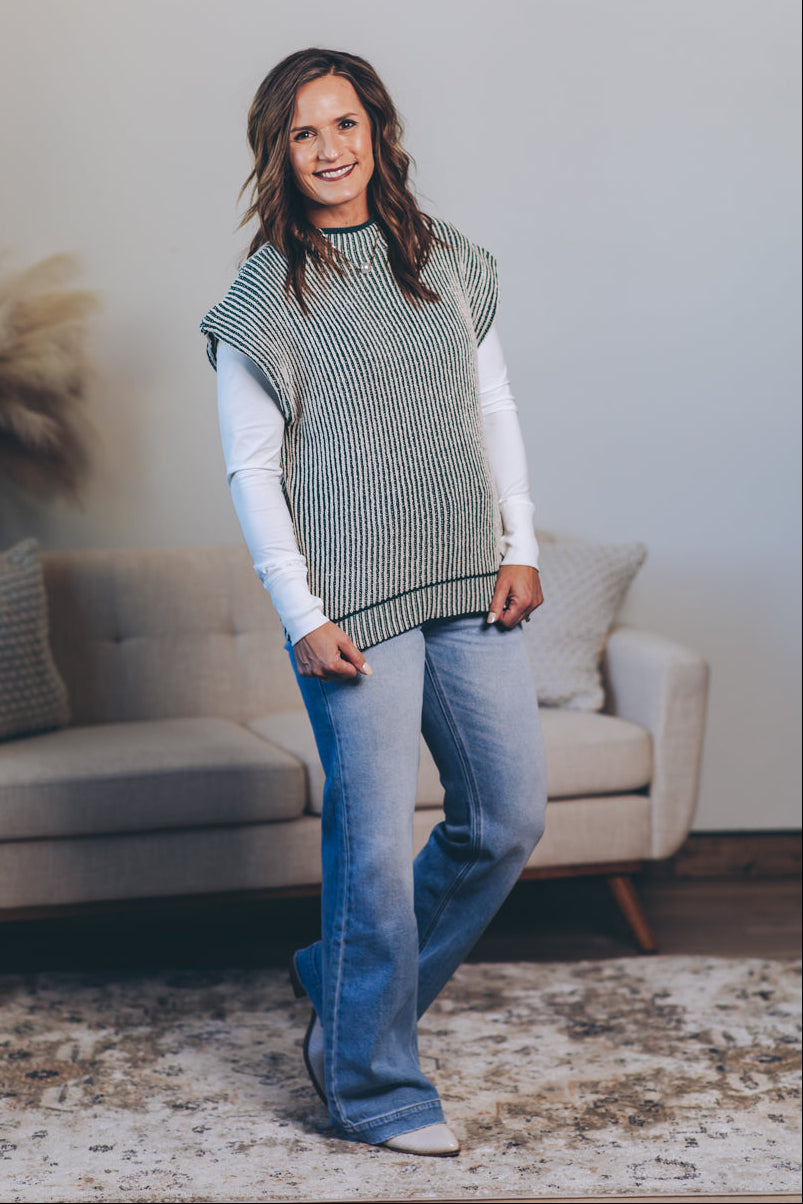 Add a splash of fun to your outfit with this Two Tone Ribbed Sweater Vest! Featuring a cozy mock neck and sleeveless design, it’s perfect for layering or wearing solo on a breezy day. The playful two-tone ribbing adds a cool edge, making it a versatile piece that’s as comfy as it is stylish.