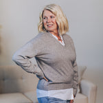 Cozy meets cool in this V Neck Combo Sweater! Featuring a playful blend of knit and woven fabrics, it’s perfect for layering up with style. Long sleeves keep you warm, while the flattering V-neck adds just the right touch of charm. Make every outfit effortlessly fun and comfy!