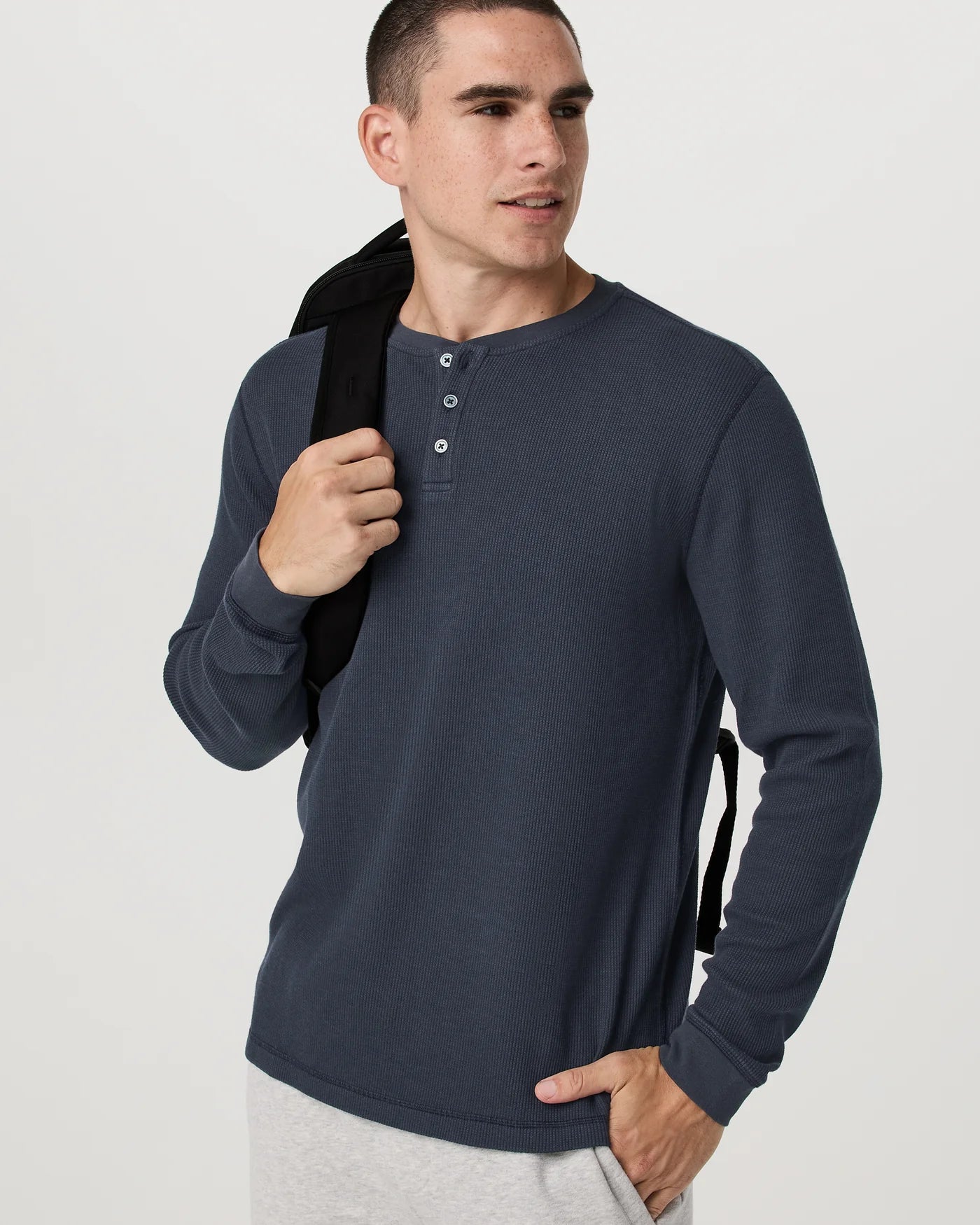 Comfort is calling. Wrap yourself in an ultra-cozy soft waffle knit that brings the best of your favorite tee to chilly days. Crafted from cotton with breathable 4-way stretch, detailed ribbing at cuffs and neckline, and a classic henley three-button placket.