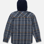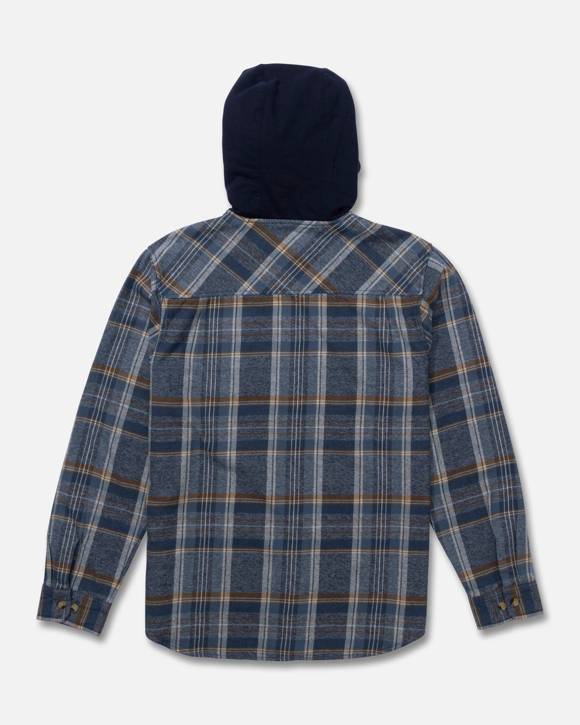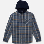 Wrap yourself in pure comfort with this Whitewash Hooded Flannel from Salty Crew. Crafted from 100% cotton heavyweight twill (250 gsm) with a cozy fleece-lined hood, this shirt brings serious style and warmth. The yarn-dyed plaid pattern features single-side brushing for a soft, lived-in feel that only gets better with wear. Details include a functional left chest pocket with woven branding, sturdy resin buttons, and a garment wash that keeps everything feeling buttery soft. Your new favorite layering piece awaits.
