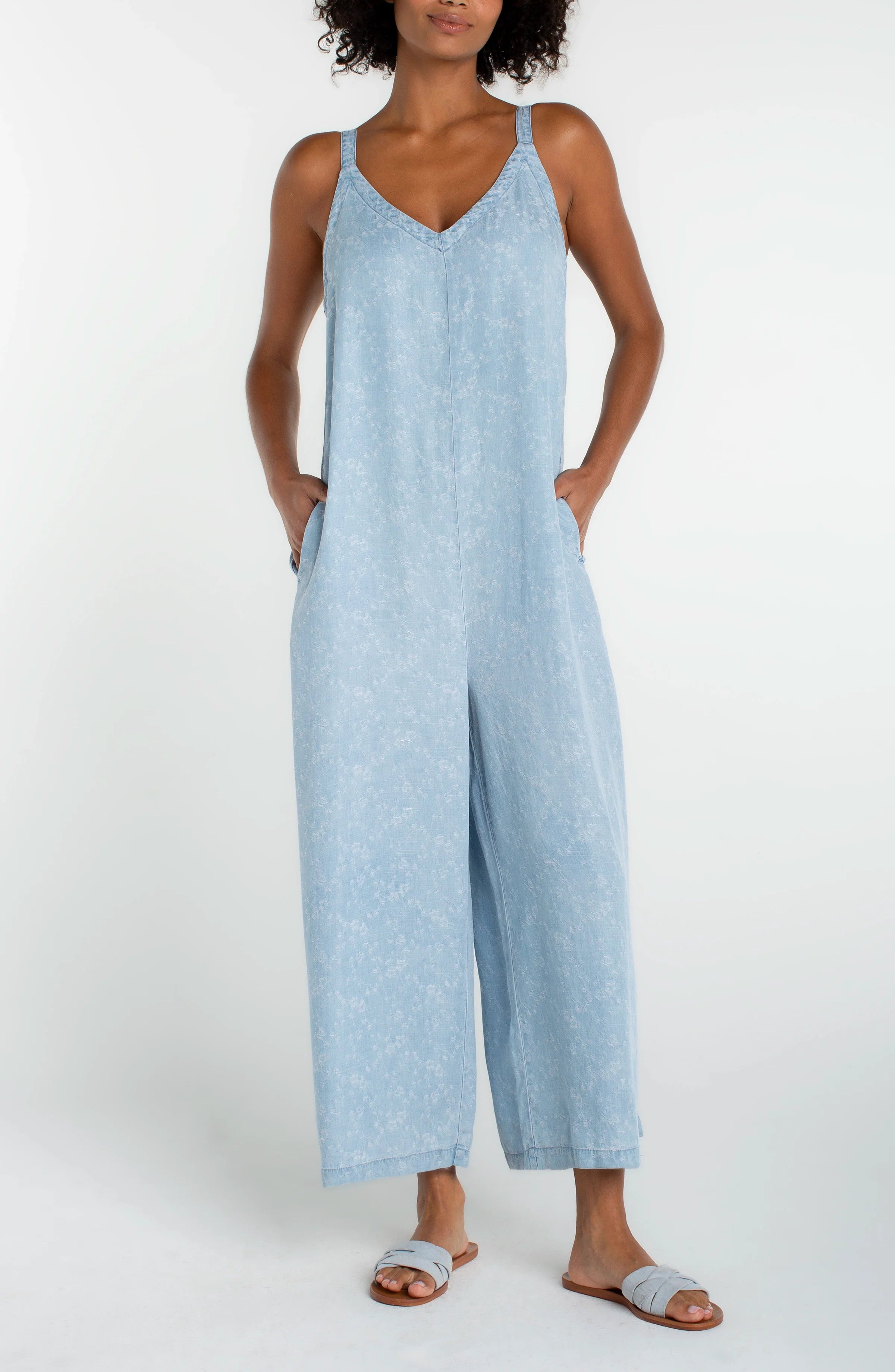 Wide Leg Crop Jumpsuit w/ Adjustable Straps (Liverpool)