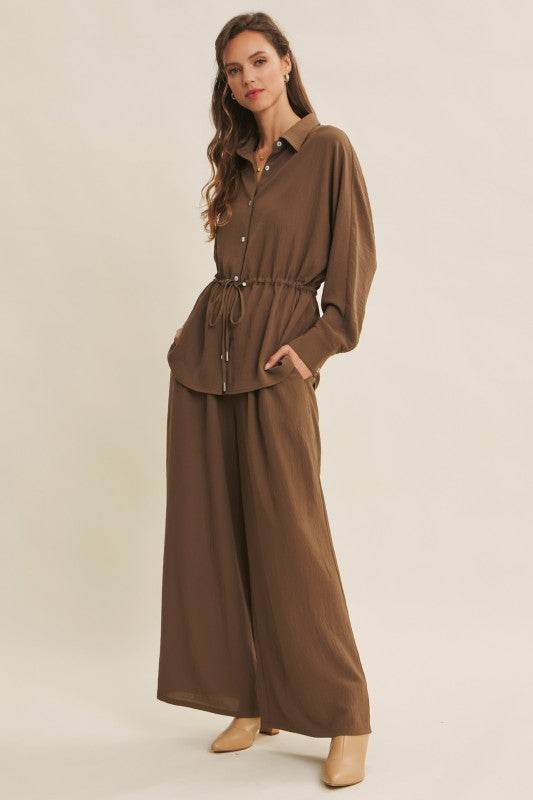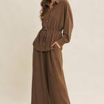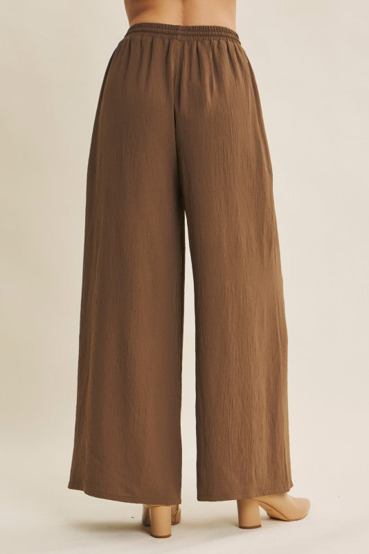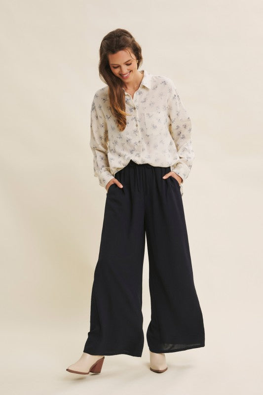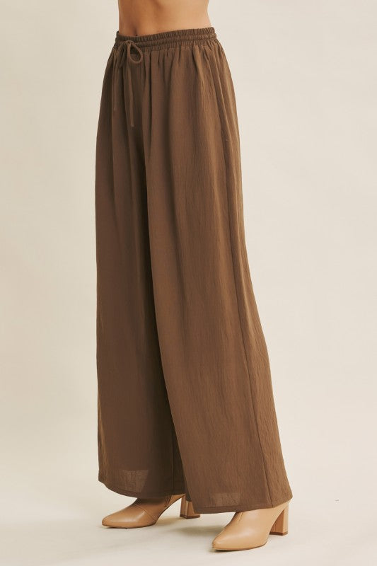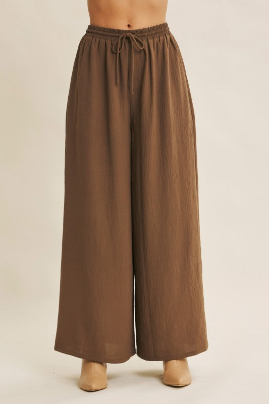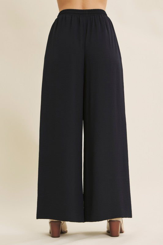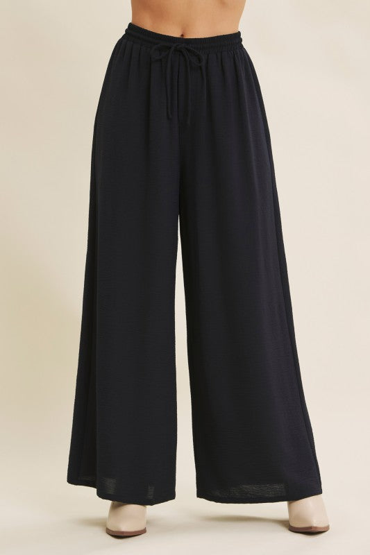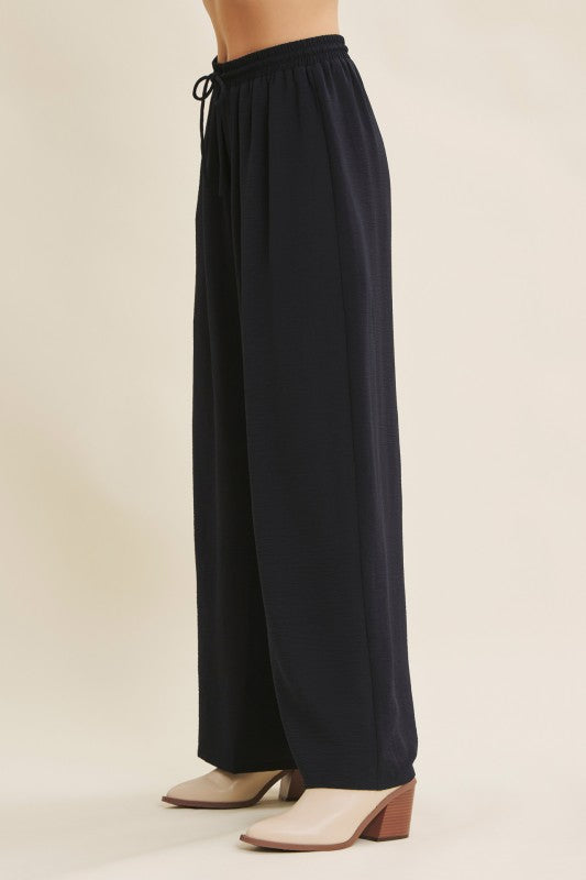 Step into comfort and style with the With The Flow Wide Leg Pant. Featuring a high-waist design and a stretchy elastic waistband with drawstrings, these pants offer a perfect fit that moves with you. The wide-leg cut adds a breezy vibe, while handy side pockets keep your essentials within reach. Whether you're lounging or stepping out, these pants keep your flow going all day long!