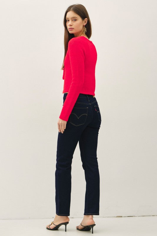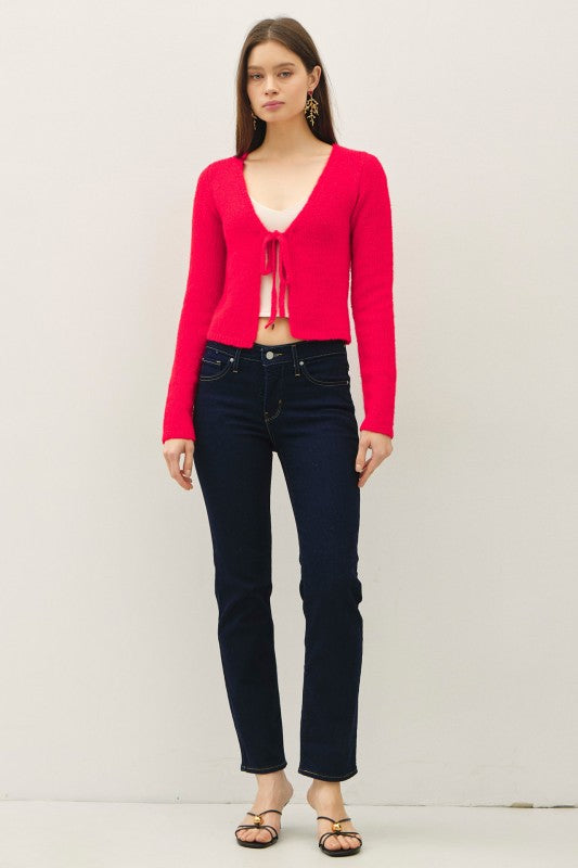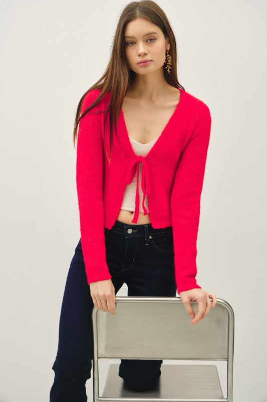 Stay cozy and cute this season with the Wooly Tie Ultra Soft Cardi. This playful knit cardigan features a flirty front tie opening and a flattering V-neck, perfect for layering. Cropped for that trendy vibe, its long sleeves keep you warm during crisp fall and winter days. Easygoing and stylish, it’s your new go-to for casual cool weather looks.